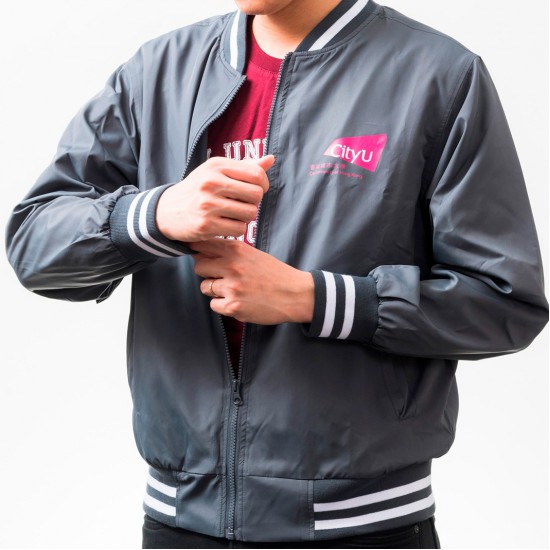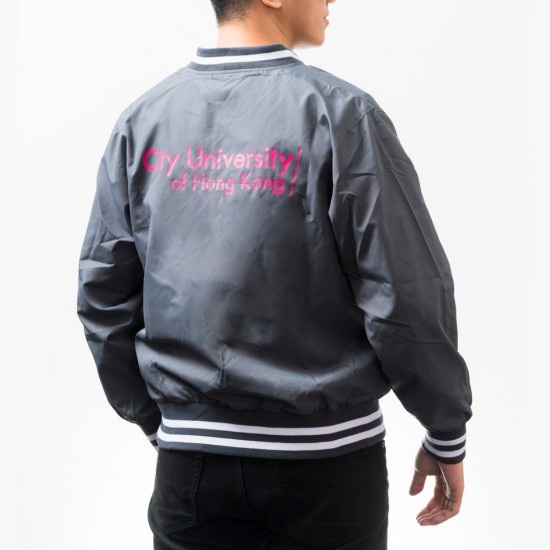 Long sleeves baseball jacket in dark grey.