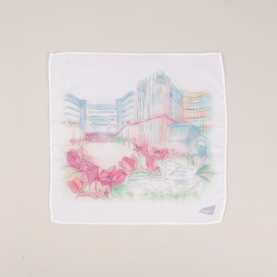 Handkerchief with CityU floral emblem in white paper envelope.